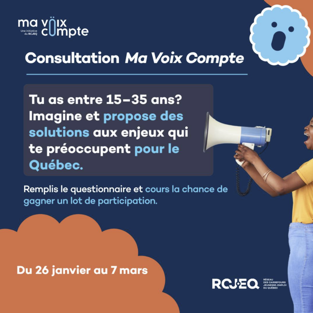 Jusqu’au 7 mars 2026, partage tes solutions pour améliorer l’avenir du Québec. Tes idées comptent et peuvent réellement contribuer à orienter les réflexions collectives.